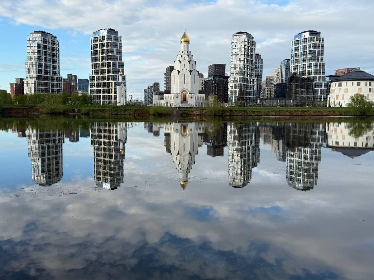 Для меня сама локация остается загадкой. Есть парк, есть набережная и красивая церковь. Свежий бриз с реки и красивая «курортная» архитектура корпусов первой очереди.
