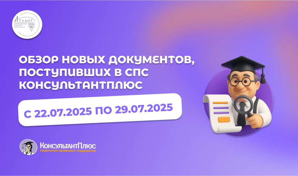 Обзор новых документов, поступивших в СПС КонсультантПлюс с 22.07.2025 по 29.07.2025