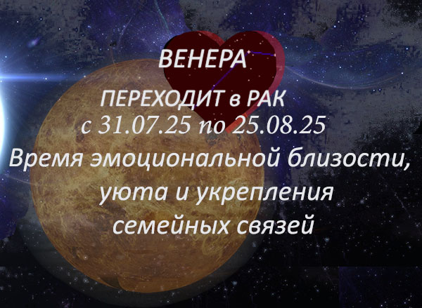 Энергия Венеры приобретает мягкость, чувствительность и глубину. Венера в Раке акцентирует внимание на семейных темах, придавая слову «семья» особое значение и создавая вокруг него тёплый, чарующий ореол. Появляется естественное желание создавать комфорт, уют и тепло как в доме, так и в отношениях. Этот период часто ассоциируется с укреплением семейных связей, с улучшением жилищных условий. В это время хочется не просто провести время вместе, а почувствовать родственное единение, создать настоящую эмоциональную гавань, где каждый может чувствовать себя в безопасности - создать свой дом и семью. 1. Эмоциональная чуткость и забота Возрастает потребность в поддержке и взаимопонимании. Люди становятся внимательнее к нуждам близких, стремятся создавать атмосферу доверия и уюта. Возникает желание защищать и оберегать родных. 2. Повышенная чувствительность и эмоциональная ранимость Венера в Раке усиливает эмпатию, но вместе с тем делает людей более восприимчивыми к обидам и эмоциональным пере