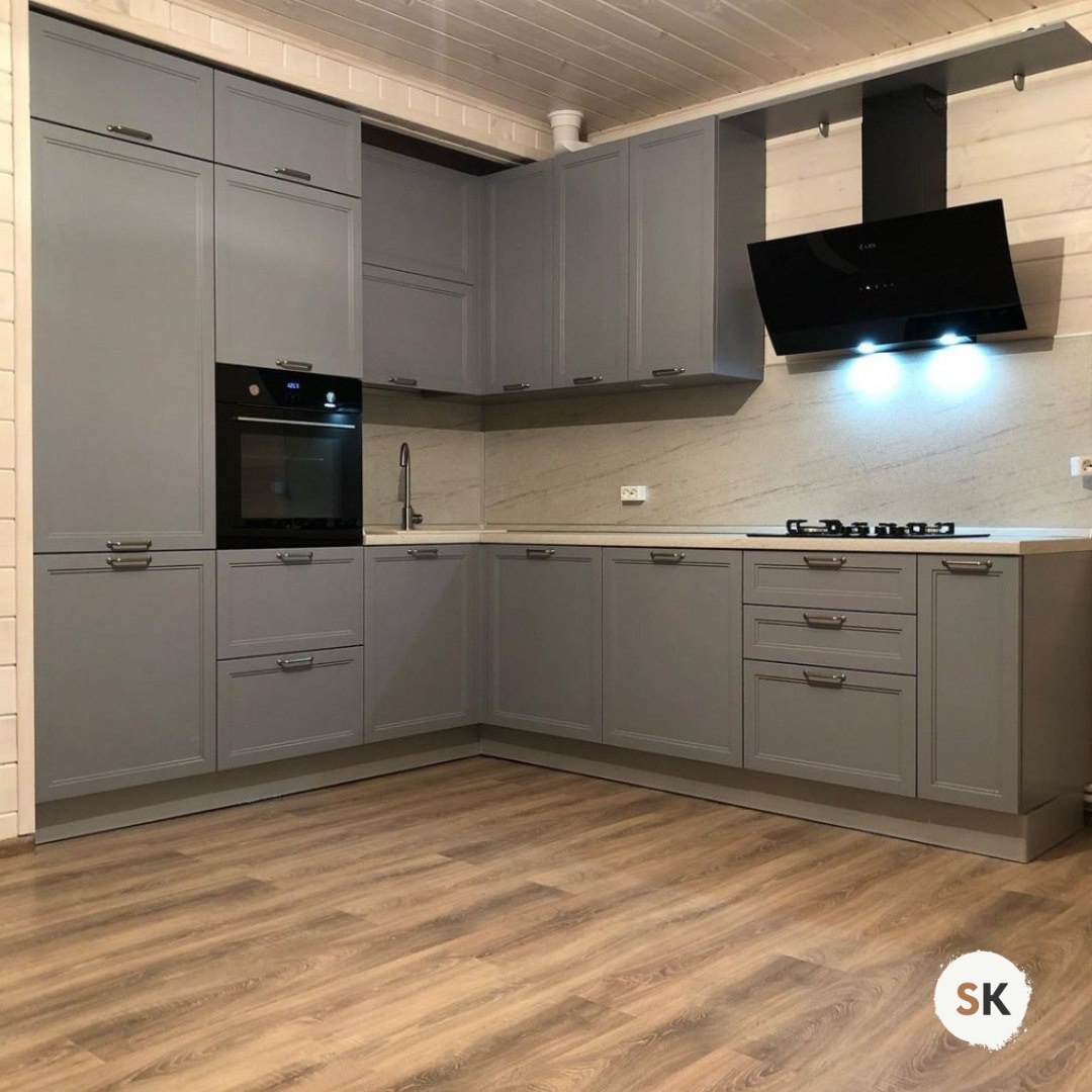 ✔️ Фасады — МДФ с матовой эмалью в благородном сером оттенке