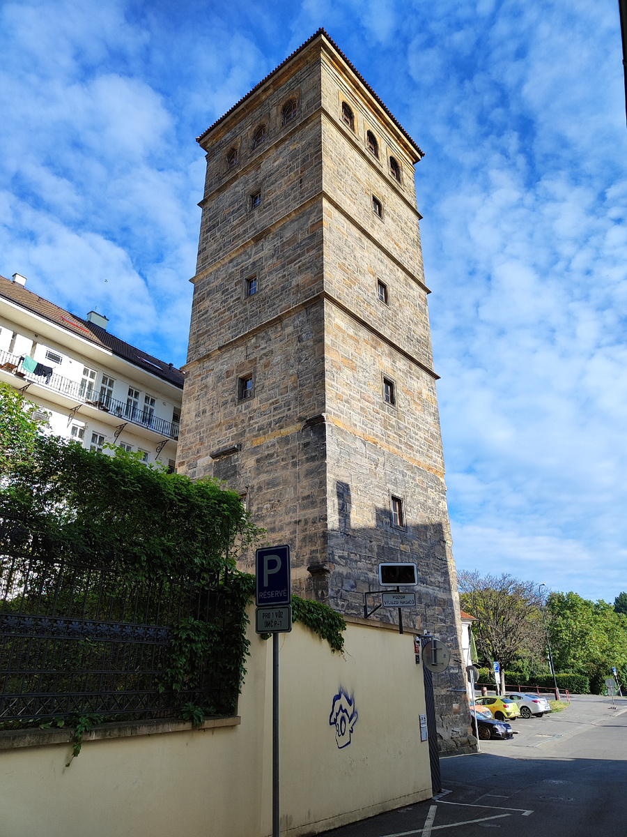 Город Нове Место (в наше время - один из районов Старой Праги), строительство которого в середине XIV века затеял король Чехии и император Священной Римской империи Карл Люксембург, был по средневековым меркам довольно большим. Воду в него подавали с помощью нескольких водонапорных башен. Сегодня речь пойдет о той, которая называется Новомлынской. Башня находится на набережной Людвика Свободы, фактически, в историческом центре, но чуть в стороне от традиционных туристических маршрутов. В основе текста - пост, написанный для канала несколько лет назад. Я добавил в него больше информации и новых фотографий. Постепенно актуализирую таким образом часть старых материалов. На фото видно, что на верхнем этаже башни больше окон, чем на любом другом, и это не просто так - расскажу чуть позже, в чем тут дело. Свое название башня получила благодаря Новым Мельницам (по-чешски - Nové Mlýny), которые когда-то здесь стояли. Она располагалась на берегу Влтавы, но за сотни лет русло реки немного измен