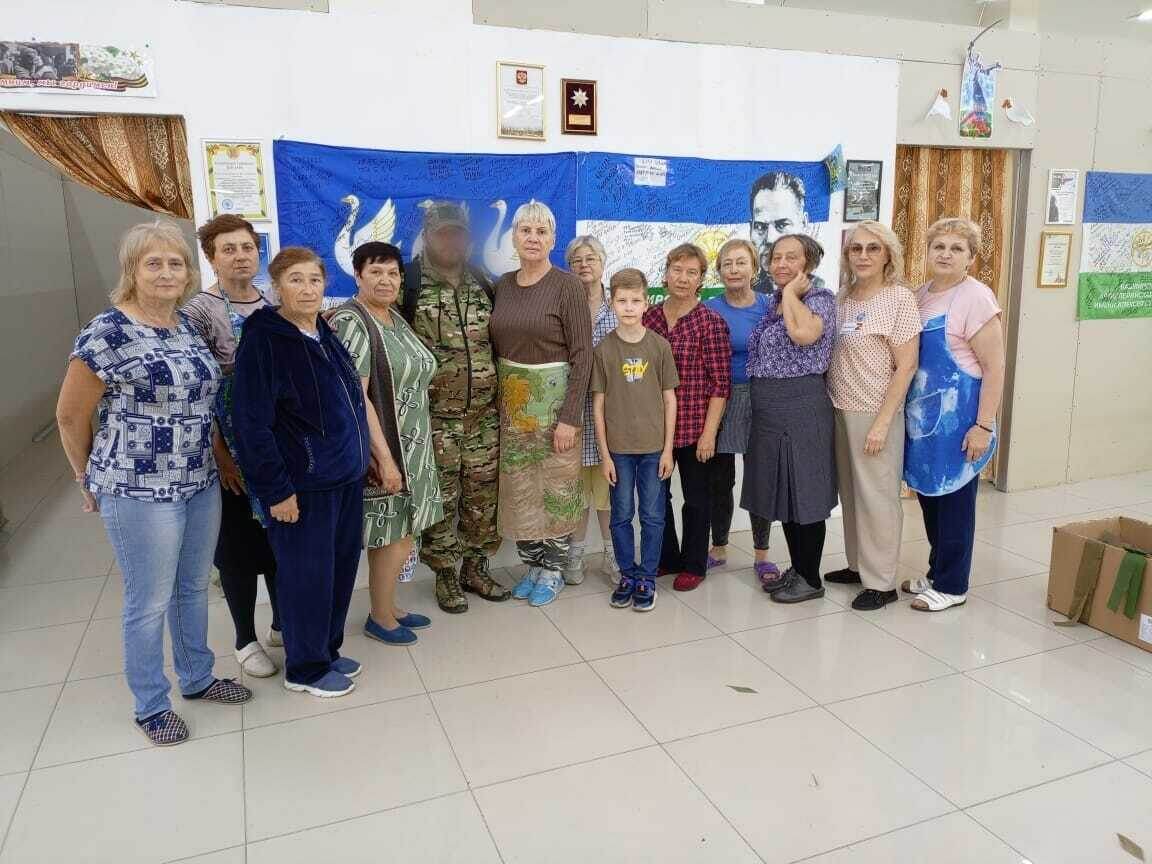 Он побывал на волонтёрской площадке «Вместе к победе России». Участвует в боевых действиях на белгородском направлении. «Без подарков не отпускаем!» - говорят добровольные помощники фронту, вручая Куганаку изделия собственного производства.