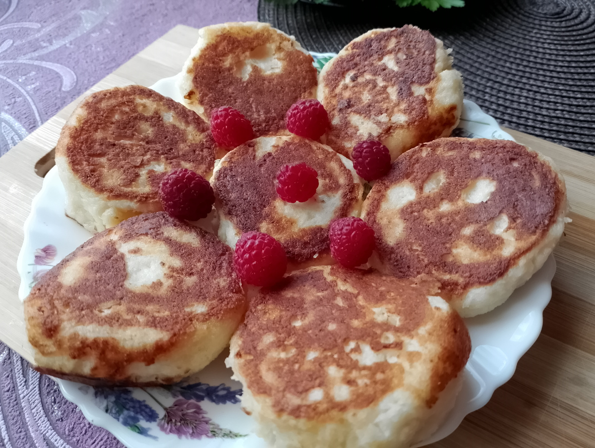 Открываем холодильник, достаём, задумавшийся о жизни и поджимающем сроке годности, творог, оставшуюся сметану, добавляем рисовую муку и делаем на завтрак сырники.