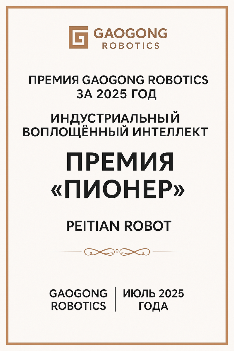 PEITIAN ROBOT выиграла главную отраслевую премию AI+робототехники и уже готова вывести гибкую сварку и логистику на новый уровень 22 июля 2025 года на Саммите по промышленным приложениям эмбодимент‑интеллекта в Уси (Китай) компания PEITIAN ROBOT получила премию «Пионер индустриального эмбодимент‑интеллекта 2025» от GG Robotics. В жюри — более 600 топ‑менеджеров и экспертов отрасли. Награда достаётся тем, кто превращает ИИ‑алгоритмы в реальные, осязаемые («embodied») роботы. Эмбодимент‑интеллект — это «телесный» искусственный интеллект: когда нейросеть не просто анализирует данные, а управляет физическим устройством в реальном мире. Представьте, что ChatGPT вселяется в сварочного робота и учится обходить препятствия, настраивать режимы и проверять качество шва лучше человека‑оператора. Главная разработка PEITIAN — интеллектуальный агент YiHan на базе ОС YiLing: Премия GG Robotics — не просто красивая грамота. Это сигнал рынку, что гибкая автоматизация становится «новой нормой» для ав