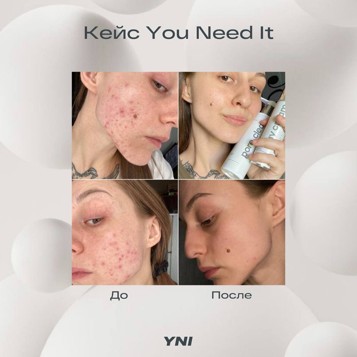 Схема ухода для проблемной кожи! ⠀ У Ольги были вечные эмоциональные качели: постоянные воспаления, жирный блеск, закрытые комедоны. ⠀ Летом 2023 она впервые попробовала косметику YNI — после курса Анны. И кожа стала «откликаться»: меньше высыпаний, спокойнее, чище. ⠀ Но осенью — новые сложности: паразитоз, дефициты, сбои по ЖКТ. Состояние ухудшилось, но Ольга не сдалась. ⠀ 🧴 Она продолжала ухаживать по подобранной схеме— и это дало результат. К декабрю — уже видимые изменения. А в январе 2025 — устойчивая схема и кожа, которая радует. ⠀ Мы в восторге от результата! Ольга пробовала все средства нашей линейки, но для своей проблемной кожи выделила комфортную схему ухода: 👉🏻 база (умывание, тоник и дневной крем); 👉🏻 дополнительное увлажнение бустером в отопительный сезон; 👉🏻 2-3 раза в неделю сыворотка от постакне; 👉🏻 1-2 раза в неделю маска и полиш. ▫️ Крем Day Cream ▫️ Тоник Good Water ▫️ Сыворотка Glaze ▫️ Гель Pore Clean ▫️ Бустер Hydro Boost ▫️ Полиш Face Polish ▫