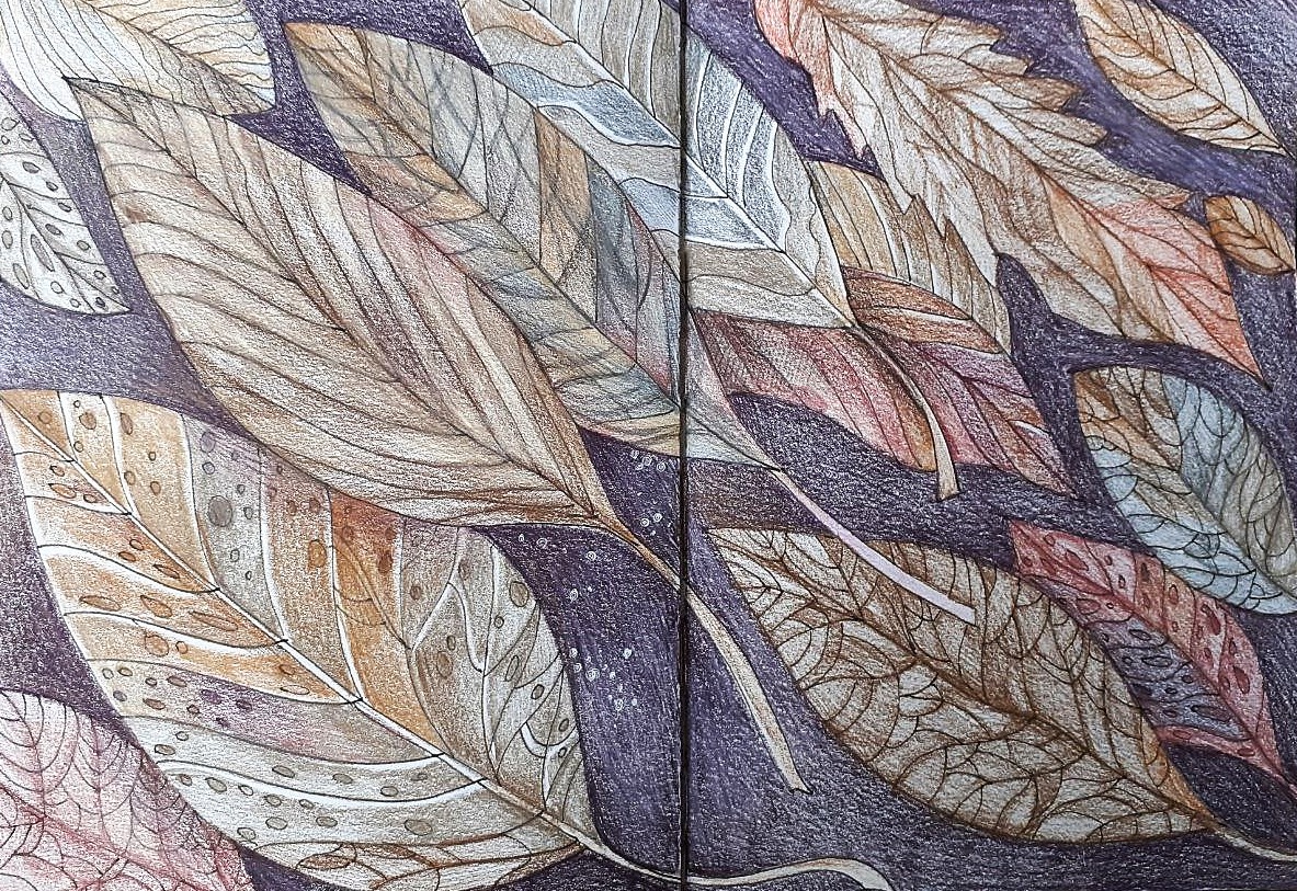 До календарной осени еще целый месяц, а до нарисованной на рисунке ниже - и все три. Но вот захотелось. Наше внутреннее время не всегда совпадает с календарным. Эту работу хочу использовать как иллюстрацию для своего текста "Бегство в страну ветров". В последнее время занимаюсь тем, что рисую для него иллюстрации. Если получится, то сверстаю книгу. Первоначально собиралась сделать все иллюстрации в бежевых тонах, но спустя некоторое время наскучила одна гамма. Покажу несколько картинок. Персонажи странные, поэтому и иллюстрации соответствующие. Ниже изображена мадам Чешуйница: А это несколько персонажей идут гулять в лес: Любимые мной лестницы: Деревья-дендроморфы: Говорящая огненная саламандра: Есть и много других рисунков, может быть, выложу их попозже. Серия в бежево-коричневом не получилась, сюда затесался и цвет. Но пусть будет: Есть и вот такой замок-дом: Такое творчество за последнее время удалось перевести контрабандой из мира невидимого в мир видимый. Есть мнение, что каждый
