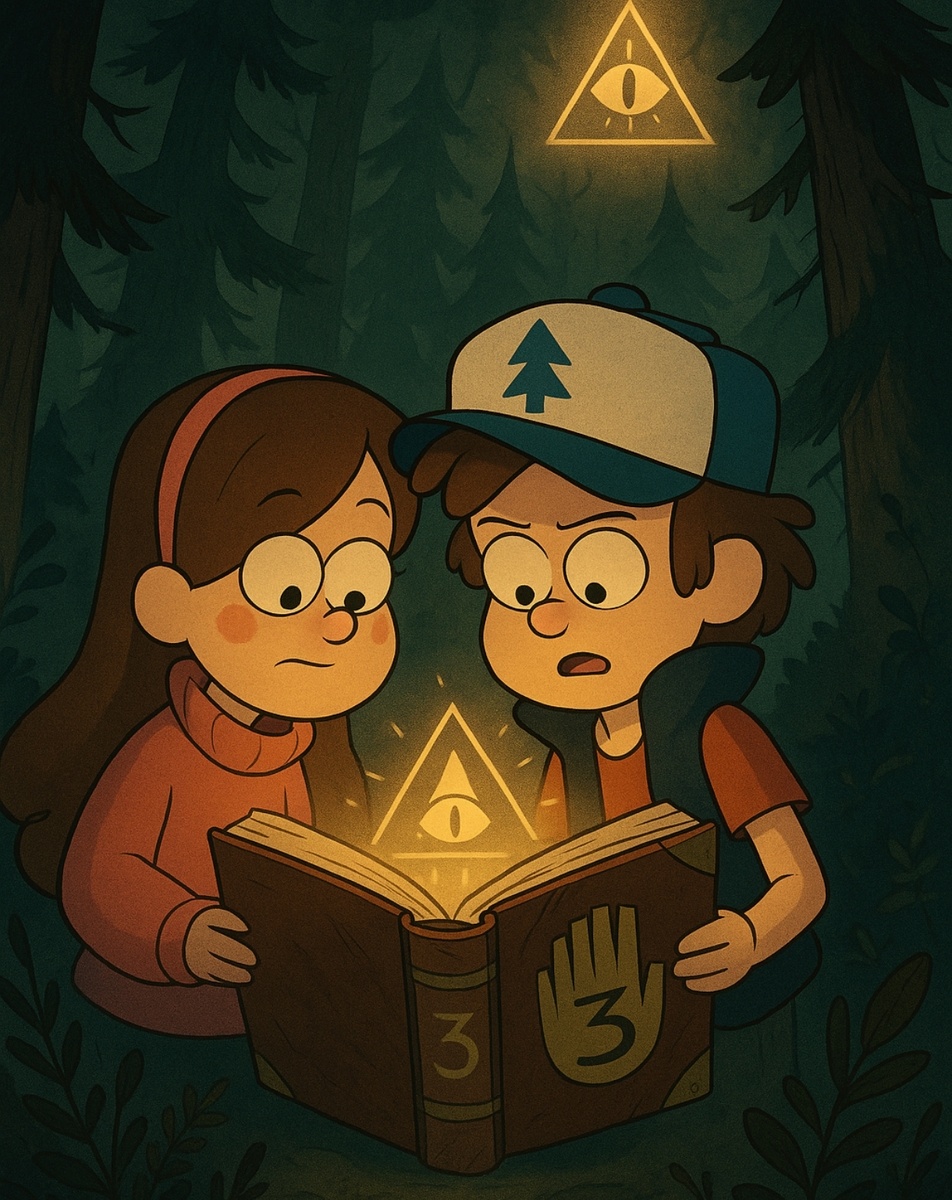 Лето 2012-го. Кто-то впервые попробовал энергетик, кто-то — поцелуй, а кто-то — нырнул в таинственный омут штата Орегон, где близнецы Диппер и Мейбл столкнулись с говорящими гномами, треугольными демонами и семейными тайнами. Прошло больше 10 лет. А Гравити Фолз до сих пор не забыт. Он всплывает в мемах, цитатах, татуировках и слезах тех, кто вырос — но так и не отпустил этот лихой мультмистический триллер. > Почему же мы всё ещё надеемся на продолжение? Почему Disney так и не дал зелёный свет третьему сезону? И зачем вообще Алекс Хирш забил на логотип Disney в финальных титрах и вставил «совершенно ненужную голову свиньи»? «Мистери Шек» как метафора нашей жизни Скажем прямо: Gravity Falls — это не просто мультсериал. Это послание поколению, обёрнутое в лесные шорты, ламповые VHS-эффекты и шифры, которые расшифровывали целыми форумами. Казалось бы — детский мультик. Но нет. Там были: тайные общества и зловещие дневники, трогательные семейные драмы, философские подтексты, и, конечно