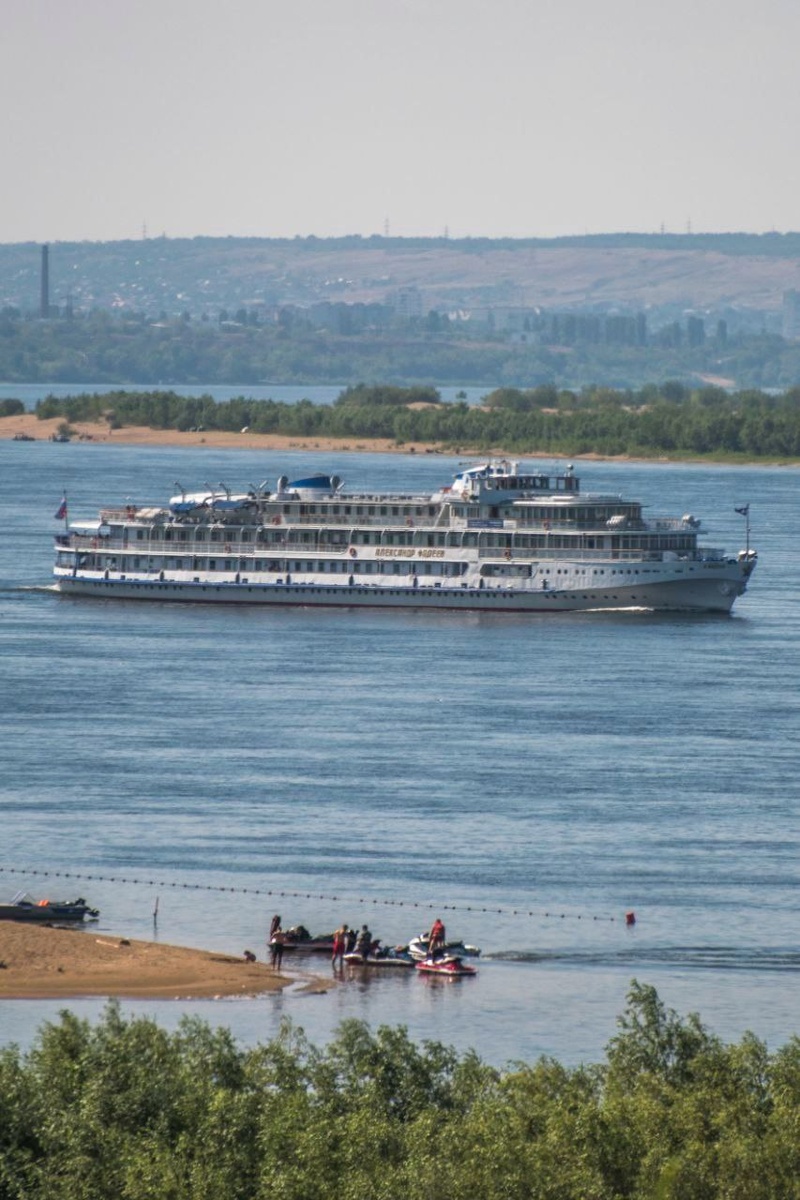 Пассажирский теплоход Александр Фадеев бежит вниз по Волге-Матушке 🌊