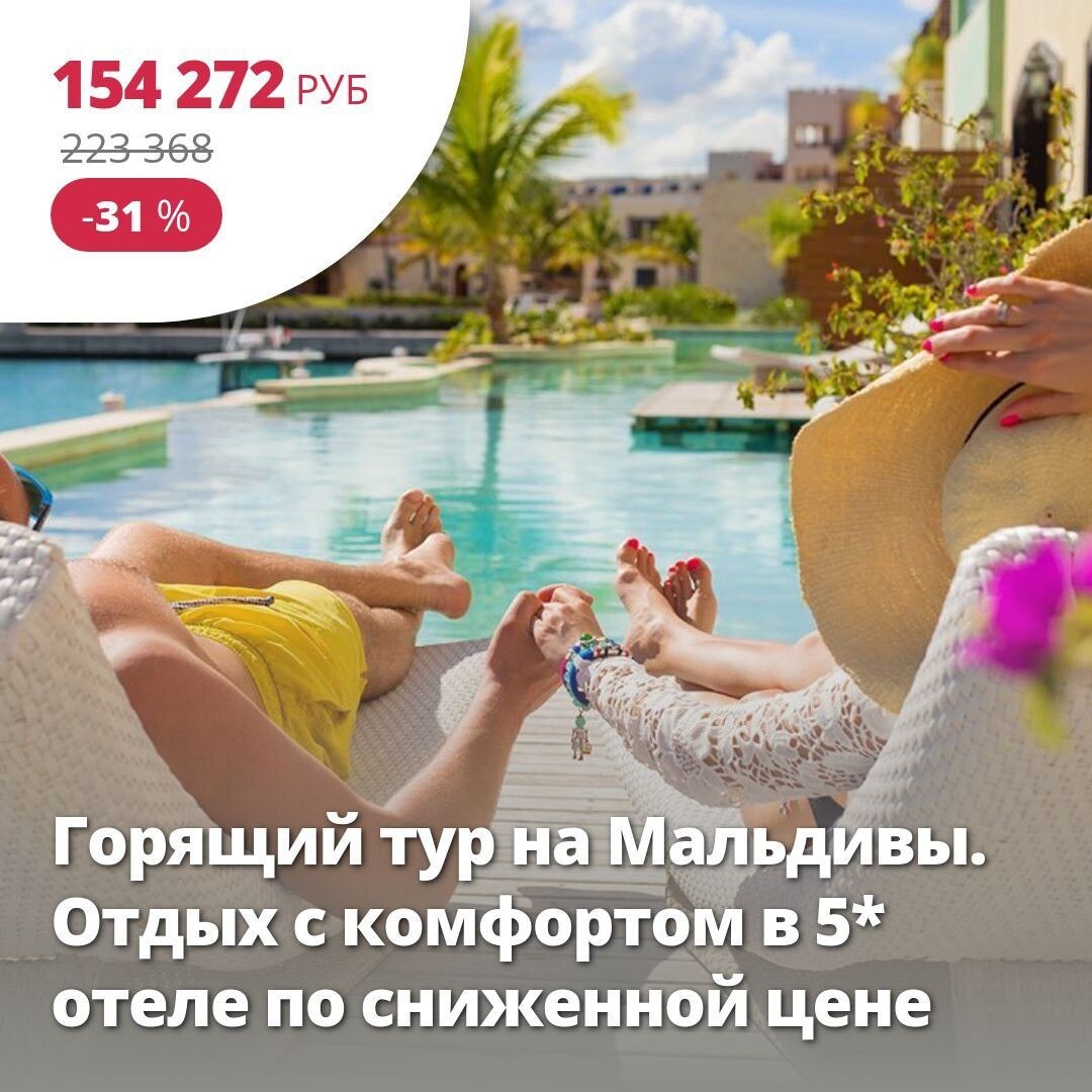 🔥 Цена тура: 154 272 руб/чел ❤️ Горящий тур на Мальдивы. Отдых с комфортом в 5* отеле по сниженной цене 🏠 5*, Мальдивы, Мальдивы из Москвы 1 сентября на 8 ночей. Мальдивы — это более тысячи коралловых островов в окружении ласковых вод Индийского океана. Здесь райские пляжи с белоснежным песком, богатая тропическая природа и высокий уровень сервиса. Это экзотическое направление выбирают любители роскошного размещения, бесконечного покоя, красивых фотографий. Подробнее здесь: https://starttime.ru/search-tours?tvcard=hedrsx Лучшие туры https://starttime.ru/search-tours #СтартТайм #ЛучшийТур