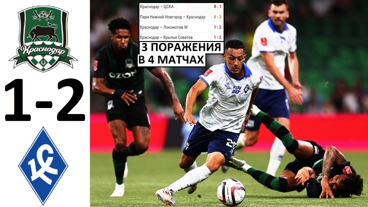 Итак, у нас подоспела свеженькая сенсация. Только, что завершился матч группового этапа Кубка России. И чемпион нашей страны "Краснодар" проиграл "Крыльям Советов" со счётом 1-2. Причем проиграл на родном стадионе, перед своими болельщиками. Которые пришли на трибуны и ждали, что команда исправится после фиаско с "Локомотивом" в прошлом туре РПЛ.