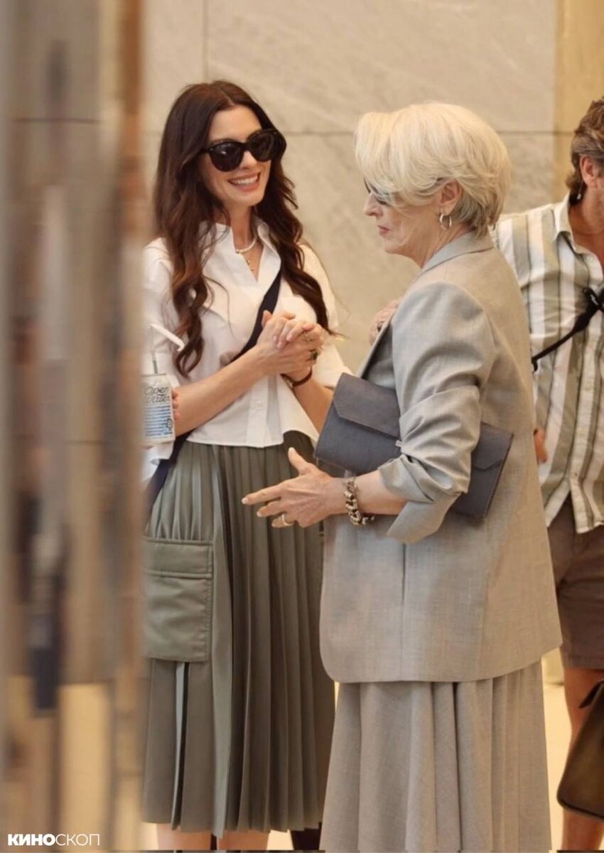 📸 Мэрил Стрип, Стэнли Туччи и Энни Хэтэуэй на новых фото со съемок второй части «Дьявол носит Prada»