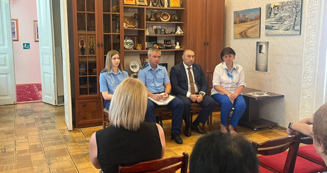 Заместитель прокурора города Пятигорска Алексей Ахрамеев вместе с помощником прокурора города Юлией Кисличенко, руководителем центра бесплатной юридической помощи Ассоциации юристов России Артуром Мартиросяном, а также с директором МБУК КТ «Дом Национальных Культур»Аленой Гавриловой провели выездной прием членов семей участников СВО. На встрече гражданам разъяснили положения законодательства предоставлению мер социальной поддержки федерального и регионального уровня, были даны ответы на интересующие вопросы, в том числе — правовые способы защиты нарушенных прав. На приеме приняли обращения, по которым будет организовано проведение надзорных мероприятий. Фото прокуратуры Пятигорска.