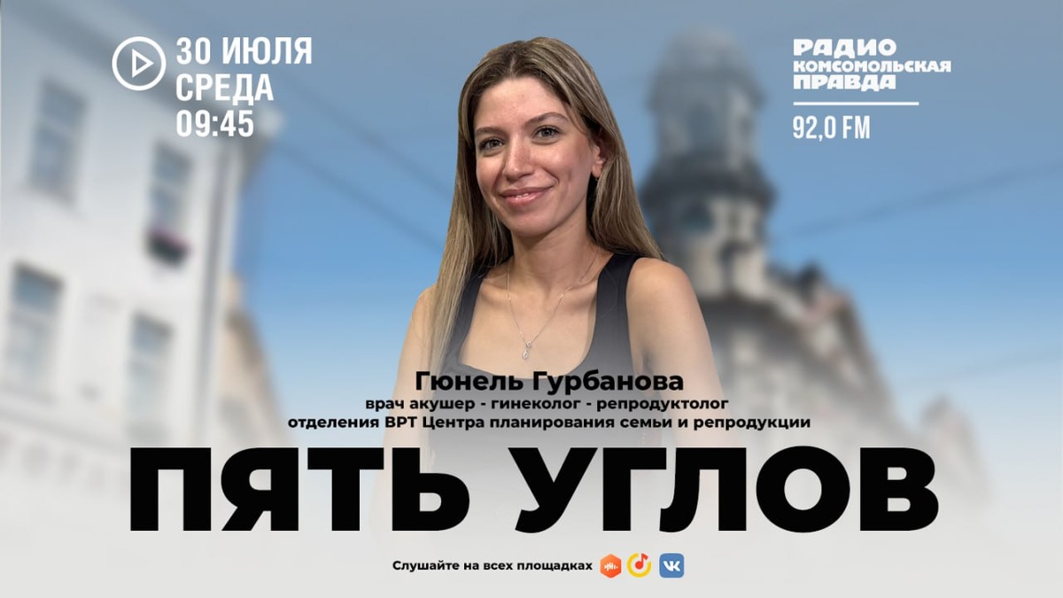 Как получить бесплатную помощь при бесплодии Сегодня всё больше семей обращаются к вспомогательным репродуктивным технологиям из-за проблем с зачатием. ЭКО (Экстракорпоральное оплодотворение) является одной из наиболее распространенных и эффективных процедур, применяемой для лечения бесплодия. И всё же не все знают: пройти ЭКО можно не только платно, но и по полису ОМС. Как устроена эта система и кому она доступна? Что входит в базовую программу? Сколько попыток разрешено, какие документы нужно собрать и с чего начать, если врач уже поставил диагноз «бесплодие»? Расскажет гинеколог-репродуктолог отделения ВРТ Центра планирования семьи и репродукции Гюнель Гурбанова. Слушайте утреннее шоу «Пять углов» на Радио «Комсомольская правда в Петербурге» (92,0 FM) 30 июля в 09:45. Подпишись на Комсомольскую правду: СПб — отдай свой буст нам