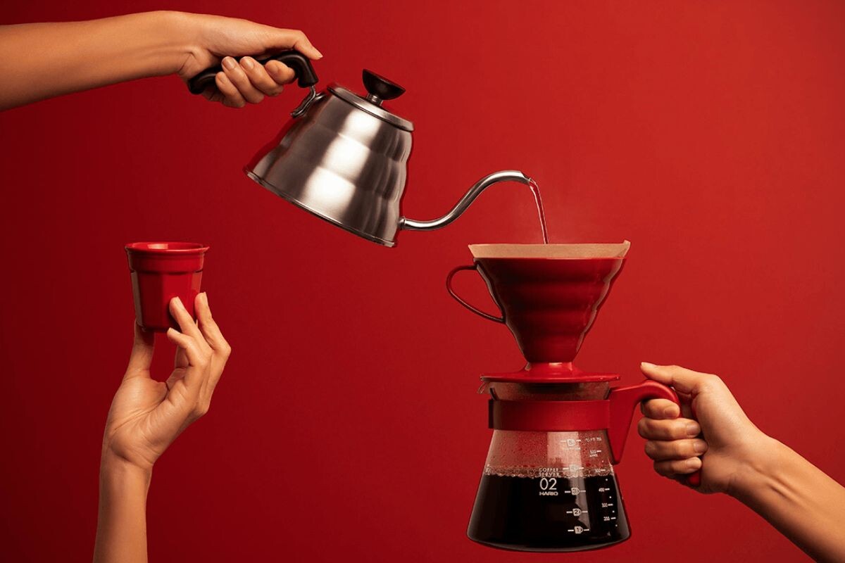 - V60 (пуровер) — капельное заваривание через конусообразную воронку. Пропорции: 19–22 г кофе на 250–360 мл воды.