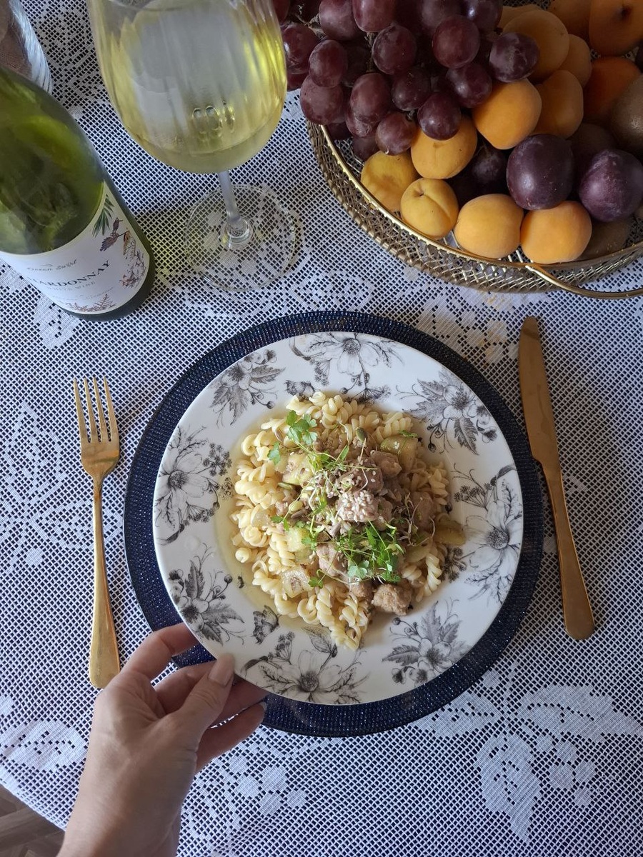 Вечерний вальс: вкусная симфония домашнего тепла Наступил вечер — время, когда суета дня отступает перед тихими семейными радостями. Сегодня ужин будет особенным, ведь каждый ингредиент превратится в маленькую мелодию, создающую волшебную гармонию вкуса и аромата. Начнём наш кулинарный балет с нежных фрикандо (так ласково называю я фрикадельки). Фарш лёгкий, будто облачко, смешанный с травами и специями, приобретёт аппетитную золотистую корочку, словно приветствие от солнца, закатывающегося за горизонт. Затем очередь приходит к скромному синенькому — сердцу южного лета. Кубиками нарезанные баклажаны танцуют на сковороде, впитывая аромат оливкового масла и соль земли. Фузилли, наши спиралевидные спутники вечера, варятся в пенистой воде, пока не станут мягкими, послушными творению наших рук. Макароны готовы принять эстафету, став основой композиции, где все вкусы объединяются в единую картину радости и удовлетворения. Наконец настал миг торжества — подача блюда! Столы накрыты белой с