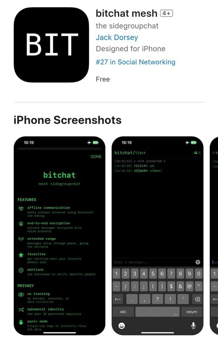 В App Store появился мессенджер, который работает без интернета — BitChat, созданный бывшими разработчиками Twitter, уже доступен для iPhone. Приложение передаёт сообщения через Bluetooth, объединяя устройства в mesh‑сеть. Оно функционирует даже при работе глушилок и полном отсутствии связи.