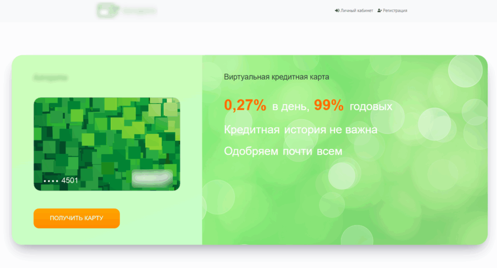 Специалисты обнаружили в зоне .ru сайт, на котором мошенники предлагают оформить виртуальную кредитную карту с лимитом в 100 тысяч рублей. На мошенническом сайте указано, что выдачу кредиток одобряют «почти всем», а кредитная история «не важна».
