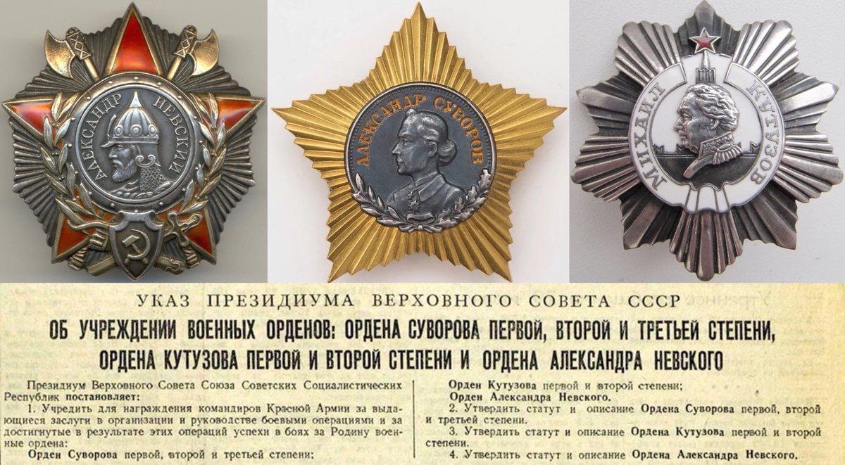 29 июля – памятная дата в военной истории России. В этот день в 1942 году учреждены первые полководческие ордена для награждения отличившихся командиров: орден Суворова, орден Кутузова и орден Александра Невского. До этого времени у нас в стране и рядовые, и высший командный состав получали одни и те же ордена. От этих традиций решили отойти и посчитали, что новые ордена должны вручаться в соответствии с должностью. Грамотные решения командиров Красной Армии, которые приводили к положительным результатам, надо было поощрять. А как? Вот и стали рассматривать различные варианты. Был даже проект, при котором учреждался орден Красного Знамени с мечами, но в итоге остановились на орденах с именами великих полководцев. Именно здесь на помощь пришла отечественная история, бережно хранившая память о ратных делах предков, защищавших Родину от захватчиков. Имена Александра Суворова, Михаила Кутузова, Александра Невского, Дмитрия Донского, Федора Ушакова, Павла Нахимова и других полководцев всег