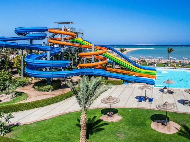 Пятизвёздочный отель в Хургаде с акцентом на семейный отдых и водные развлечения.