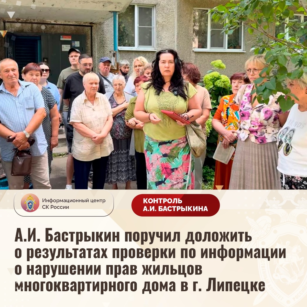 А.И. Бастрыкин поручил доложить о результатах проверки по информации о нарушении прав жильцов многоквартирного дома в г. Липецке