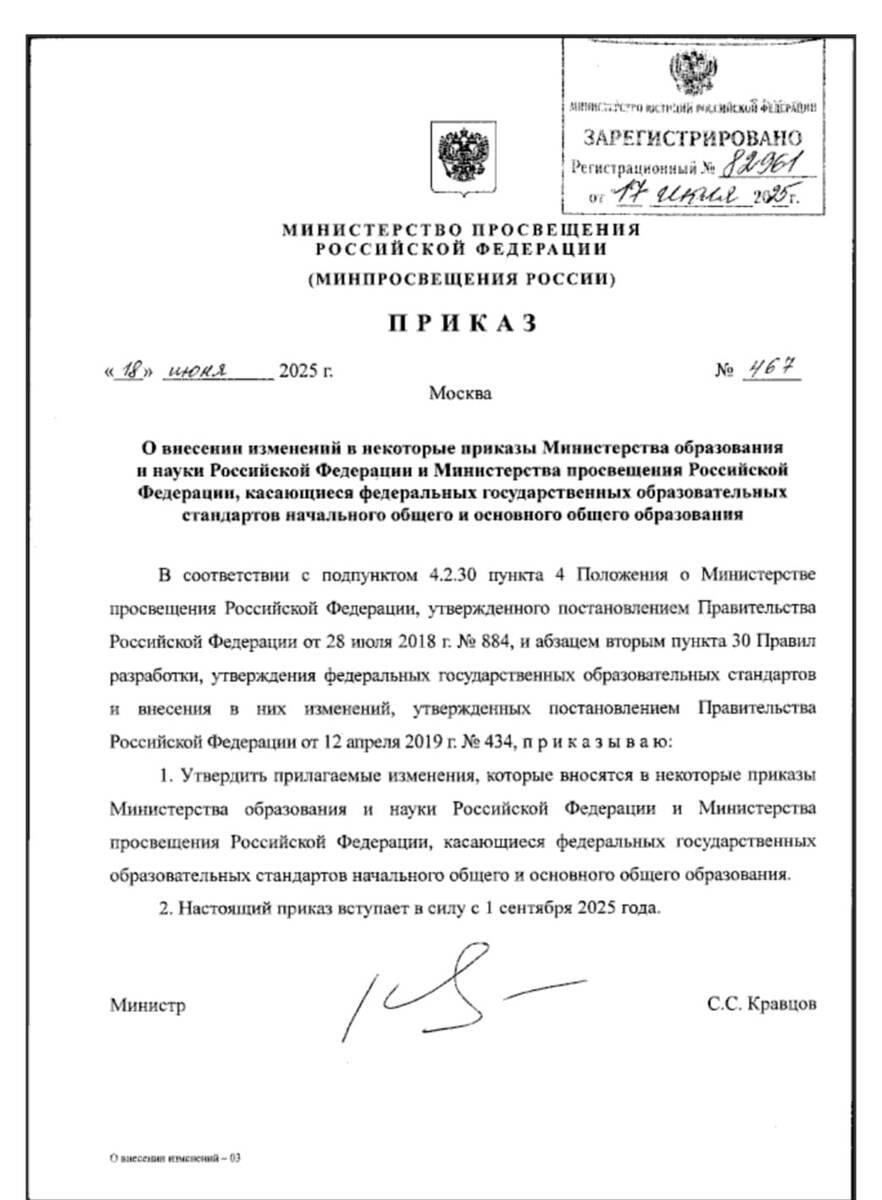 В соответствии с приказом Минпросвещения №467 от 18 июня 2025 г. в Федеральные государственные образовательные стандарты внесены следующие изменения: 31.1. Рабочие программы учебных предметов, учебных курсов, учебных модулей, курсов внеурочной деятельности должны обеспечивать достижение планируемых результатов освоения программы начального общего образования и разрабатываться на основе требований ФГОС к результатам освоения программы начального общего образования. Рабочие программы учебных предметов, учебных курсов, учебных модулей, курсов внеурочной деятельности должны включать: - содержание учебного предмета, учебного курса, учебного модуля, курса внеурочной деятельности; - планируемые результаты освоения учебного предмета, учебного курса, учебного модуля, курса внеурочной деятельности; - тематическое планирование с указанием количества академических часов, отводимых на освоение каждой темы учебного предмета, учебного курса, учебного модуля, курса внеурочной деятельности и возможност