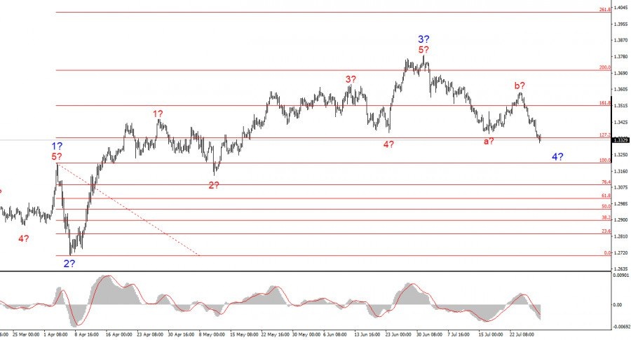 https://basechop.ru/wordpress/?p=51606 По инструменту GBP/USD волновая разметка продолжает свидетельствовать о построении повышательной импульсной структуры волн. Волновая картина практически совпадает с инструментом EUR/USD, так как единственным виновником торжества остается доллар. Спрос на него снижается по всему спектру рынка(в среднесрочном плане), поэтому многие инструменты показывают одинаковую динамику. В данное время продолжается построение коррекционного набора волн в составе волны 4. Если это предположение верно, то уже в ближайшее время снижение инструмента завершится, так как структура приняла классический трехволновой вид. Следует помнить, что в данное время очень многое на валютном рынке зависит от политики Дональда Трампа. И не только торговой. Из Америки время от времени поступают неплохие новости, однако рынок постоянно держит в голове полную неопределенность в экономике, противоречивые решения и заявления Трампа, враждебный и протекционистский внешний настрой Белого