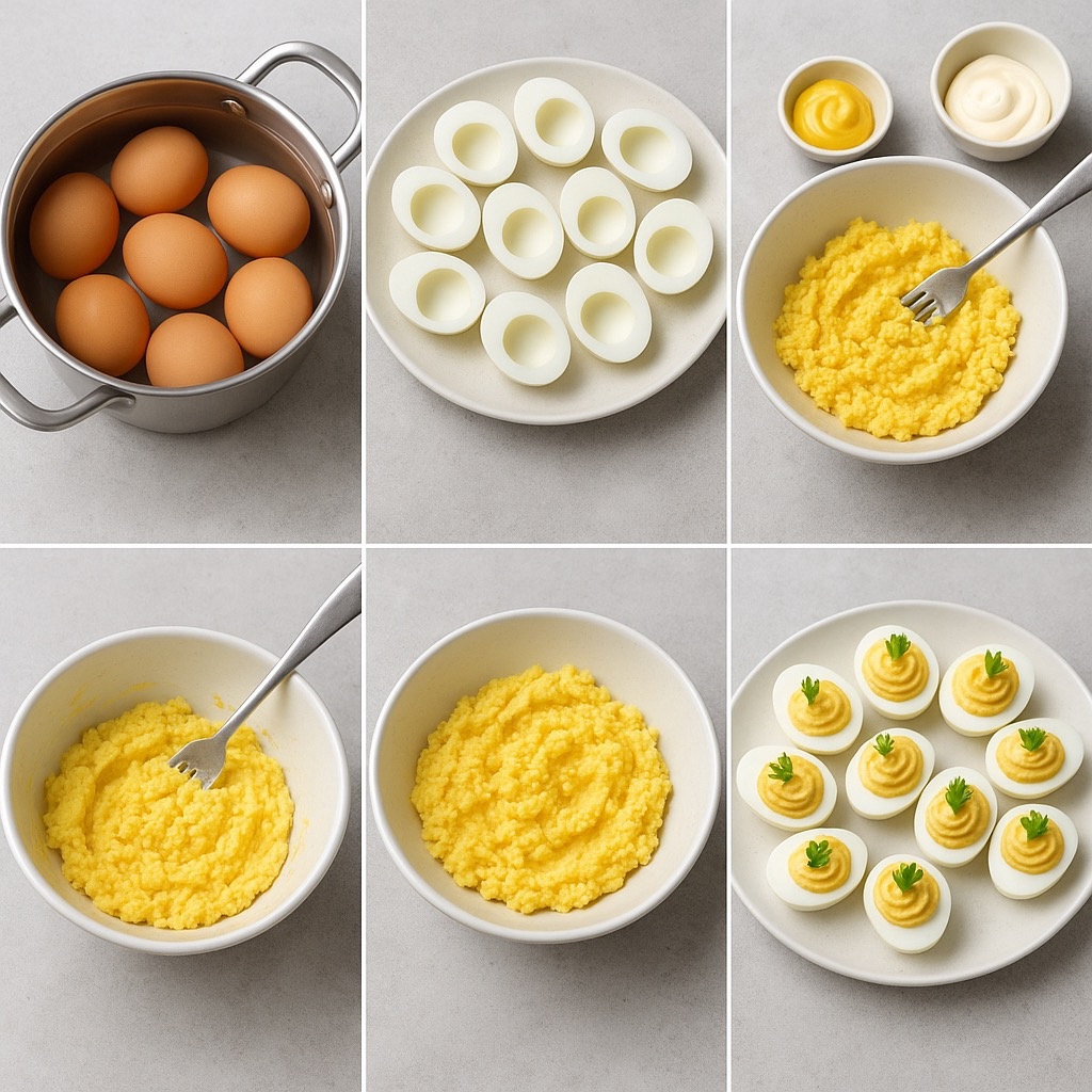 - Начинить белки полученной массой (ложкой или с помощью кондитерского мешка).