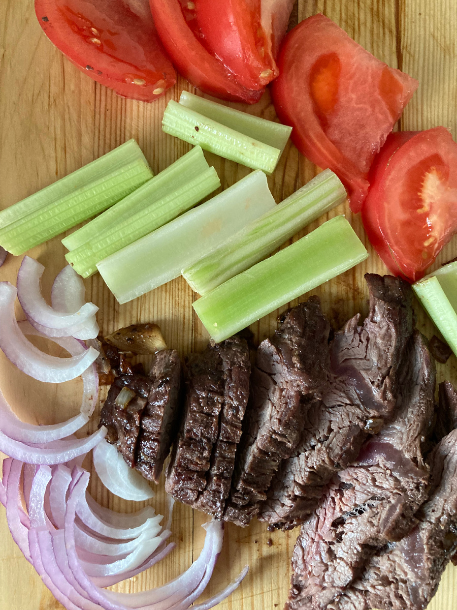 Сегодня я ему приготовила стейк из мраморной говядины. Обжарила на сковородке с двух сторон до золотистой корочки. Добавила сельдирей,лук красный, помидор розовый. А себе на утро сделала кашу манную с малиновым вареньем очень плотная.,залила в формочки. Посмотрим что получится. Я варила на воде. Поставила в холодильник для застывания.Ждем! Вот что получилось. А мужу сделала по другому.