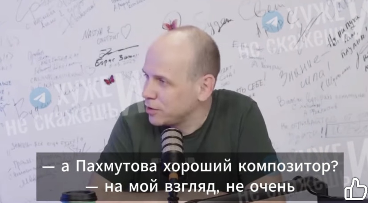 На невинный (и отчасти риторический) вопрос интервьюера «А Пахмутова хороший композитор?» лидер «Машины времени» сдержанно ответил: