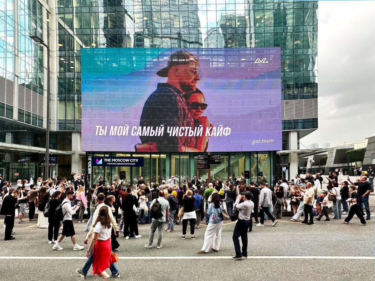 ⭐ Экраны стали медиаплощадкой для звезд и блогеров Июль выдался по-настоящему жарким — и дело не только в погоде. Экраны рекламного оператора ХАЙЛАЙТС в Москва-Сити пережили настоящий звездный бум: артисты, блогеры и бренды один за другим запускали яркие, вирусные кампании, которые тут же подхватывали соцсети и СМИ. Одним из самых обсуждаемых кейсов месяца стал сюрприз от Басты для его жены Елены. 23 июля, на фоне вечернего небоскрёба, на экране Catcher стартовало персональное видео, а сам артист исполнил вживую песню «Ты мой самый чистый кайф». Таким образом рекламный 3D-экран на мгновение превратился в сцену Олимпийского. Момент собрал тысячи просмотров в сторис, попал в музыкальные паблики и даже вызвал волну «реплик» от других артистов — кто-то уже подумывает о собственном признании в любви на экране.