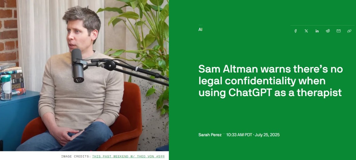 Генеральный директор OpenAI, Сэм Альтман, предостерег от использования нейросети в роли личного терапевта и от дележа интимными тайнами, так как до сих пор нет разработанных протоколов конфиденциальности:
