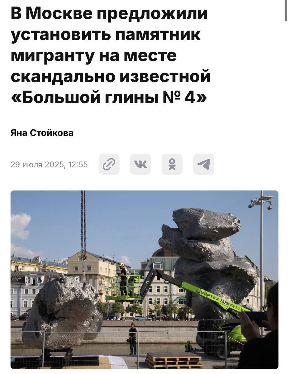 В столице обсуждается идея установки памятника мигранту взамен демонтированной ранее «Большой глины №4» 🗽.