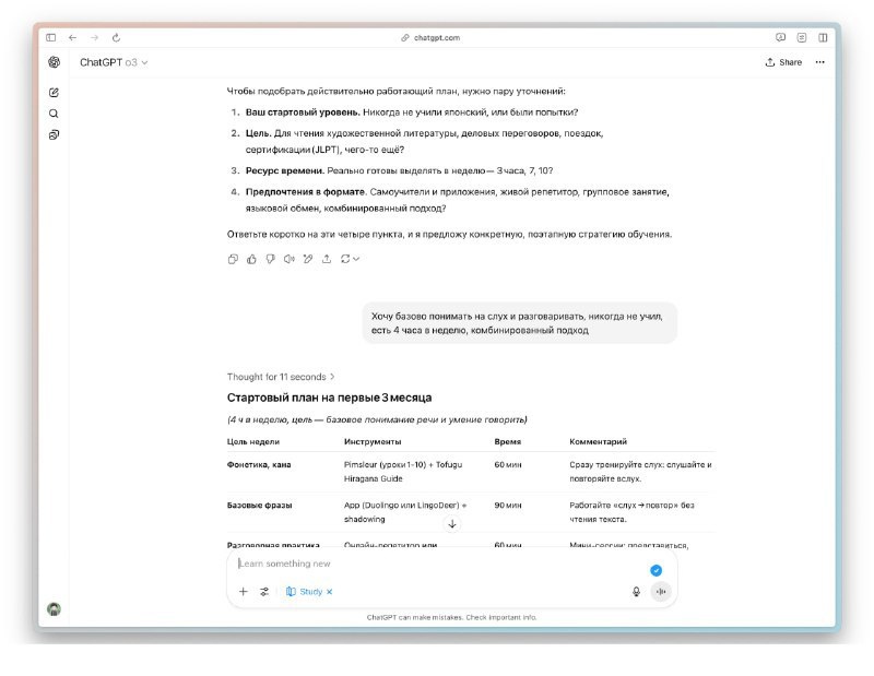 ChatGPT теперь способен создавать полноценные курсы без необходимости в сложных промптах — в чат-боте появилась функция Study and Learn