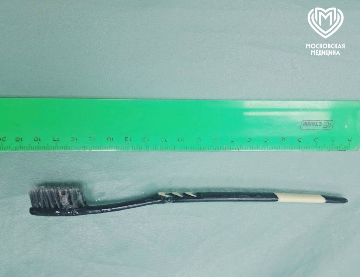 Жительница Зеленограда случайно проглотила 18-сантиметровую зубную щетку Инцидент произошел во время чистки зубов. Женщина обратилась к врачам. Медики городской больницы имени Кончаловского оперативно провели 20-минутную эндоскопическую операцию и извлекли инородный предмет из желудка без хирургического вмешательства. Пострадавшая чувствует себя удовлетворительно. 📹 Московская медицина Москва. Новости 24/7