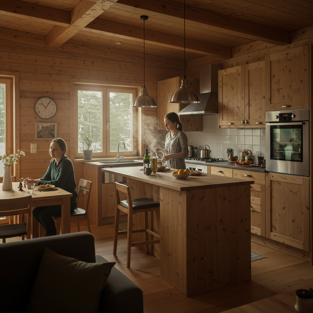 Почему современная кухня в каркасном доме перестала быть просто функциональным местом для приготовления пищи? Ответ кроется в фундаментальных социальных изменениях последних десятилетий. Кухонное пространство трансформировалось в настоящий семейный центр притяжения – место, где активно пульсирует жизнь всего дома.
