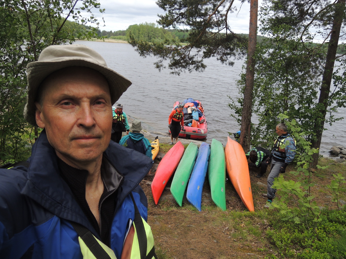 Играючи прошли на каяках каких-то 6 - 7 км завершающего перехода. Вот и берег со встречающими нас автомобилями. Разборка снаряжения, погрузка каяков и лодки сопровождения для транспортировки.