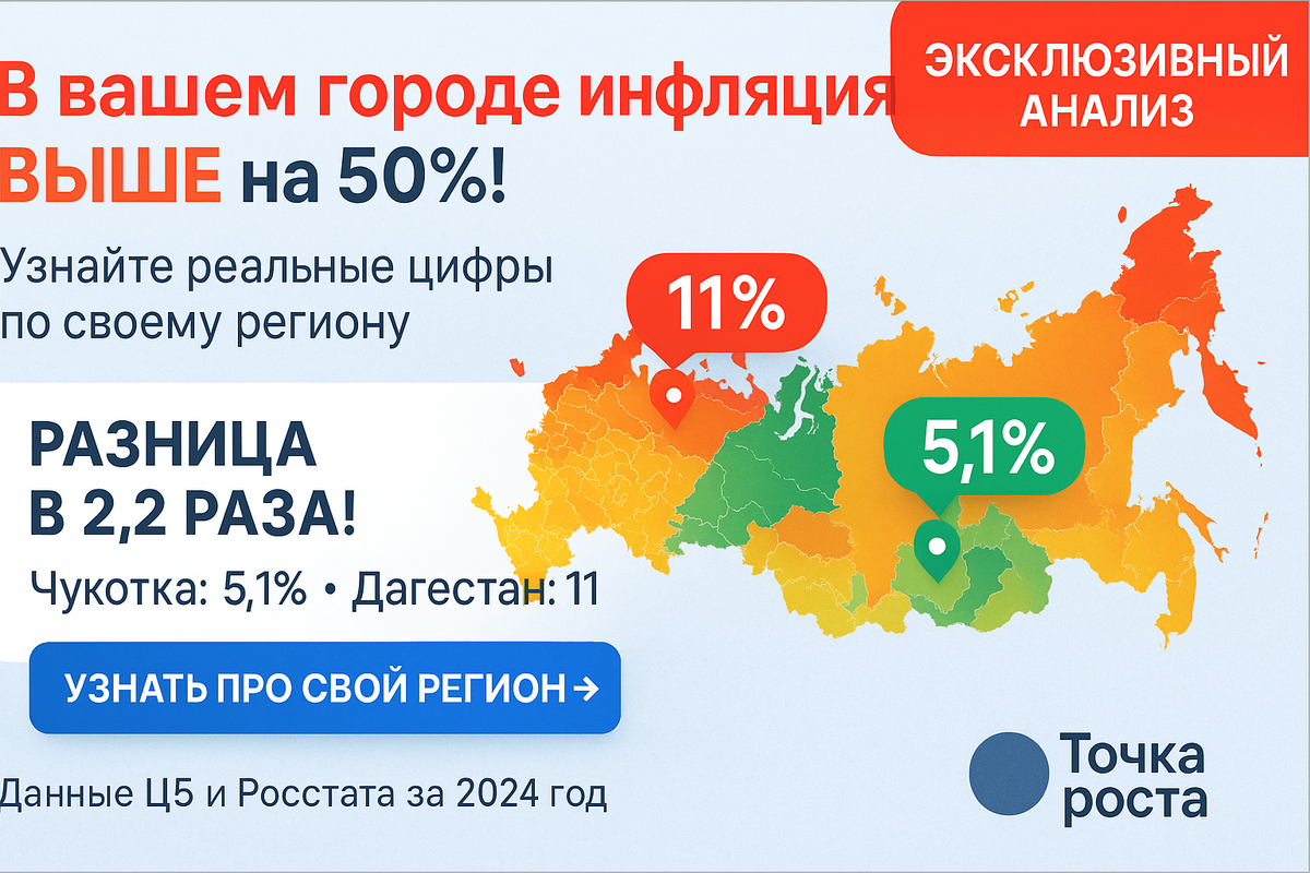 Представь, что ты узнал — в Дагестане инфляция достигла 11%, а на Чукотке всего 5,1%! 😱 При средней по России 9,5%, разброс между регионами составляет более чем в 2 раза. Сейчас ты поймешь, почему твои деньги тают с разной скоростью в зависимости от прописки.