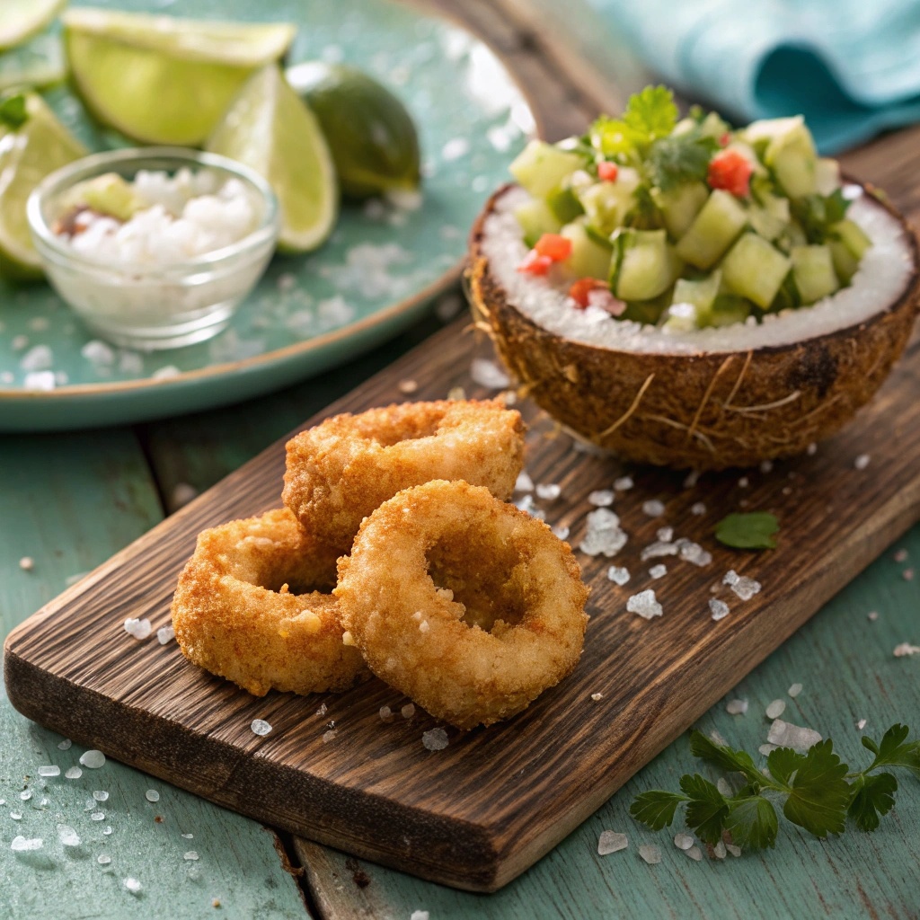 Кольца «кальмаров» из кокоса с огуречной сальсой