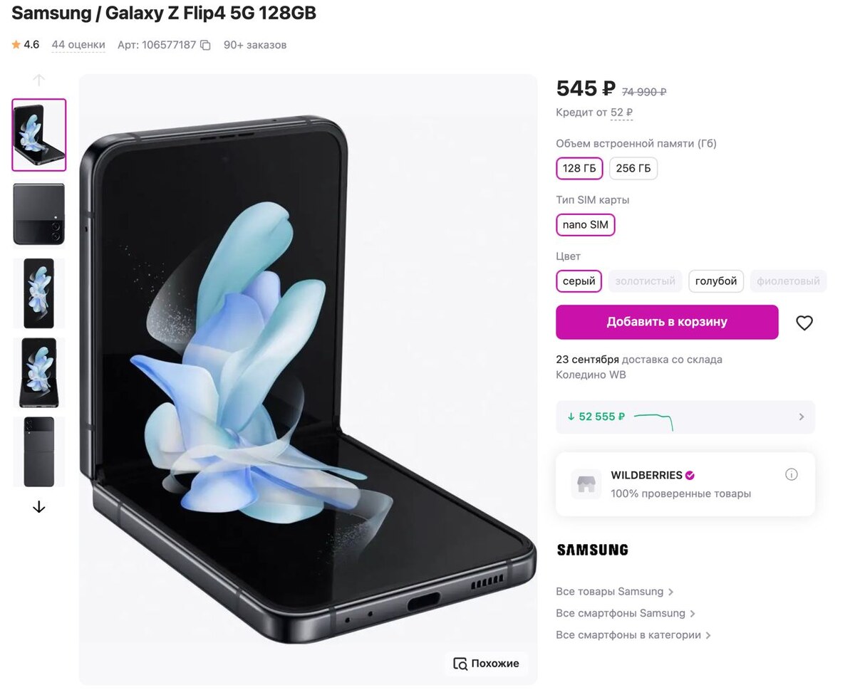Вот теперь неожиданно! На Wildberries программисты снижают цены на очень дорогие товары, и люди выкупают их за копейки. К примеру, телефон со скриншота стоит около 50.000₽, который продают за 500₽ :) Кто успел, тот и забрал, работало меньше минуты. Всё это постят в закрытый канал Телеграм, можно ещё успеть что-то забрать Ссылка тут: https://t.me/+s-rF1y9bI6hmOWY6