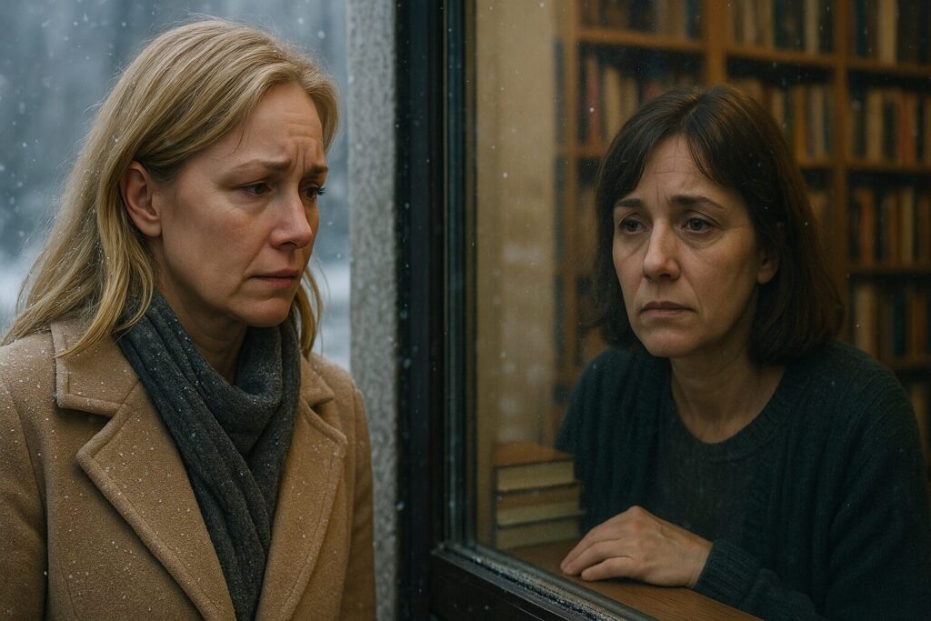 Марина притормозила у витрины книжного магазина. Сквозь запотевшее стекло мелькнуло знакомое лицо — Алёна. Та самая Алёна, с которой они когда-то делили последнюю конфету и строили снежные крепости во дворе. Марина застыла, не решаясь войти.