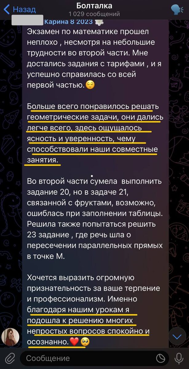 Нашла забытый отзыв одной из своих учениц, сдавшей ОГЭ в этом году! 🌟 Эти теплые слова благодарности идеально отражают суть наших занятий