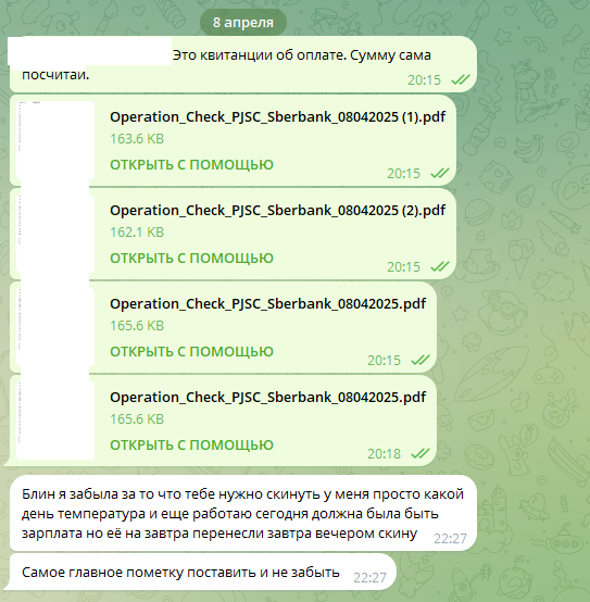 Так вот, коммунальные платежи за себя Саша платит. У неё могут быть сбои в возвращении мне этих платежей, могут быть несвоевременные платежи, но в целом - платит. Сначала счета оплачиваю я, отсылаю Саше квитанции об оплате, Саша переводит мне деньги по счетам. Да, вот тут был "хвост" за прошлый месяц, потому что в феврале Саша не работала. Как только Саша на работу устроилась, всё оплатила. В апреле Саша вернула "хвост" за февраль и оплатила текущие платежи за март.