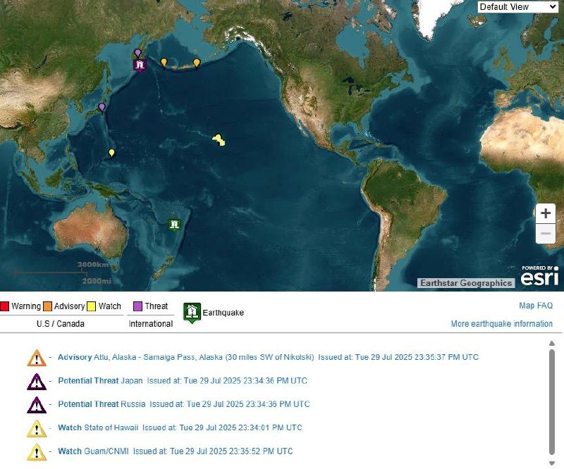 В ответ на пост MULTIPLE Tsunami ALERTS after M8 quake strikes off coast of Russia’s Kamchatka