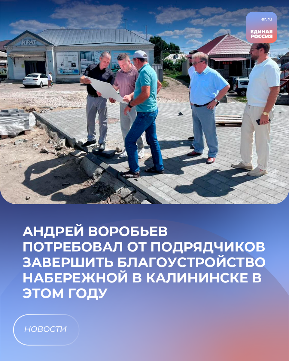 ✅Депутат Государственной Думы Андрей Воробьев (фракция «Единая Россия») посмотрел, как идет благоустройство берега реки Баланда в Калининске.
