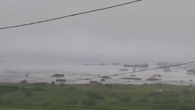 Первая волна цунами накрыла прибрежную зону Северо-Курильска: видео