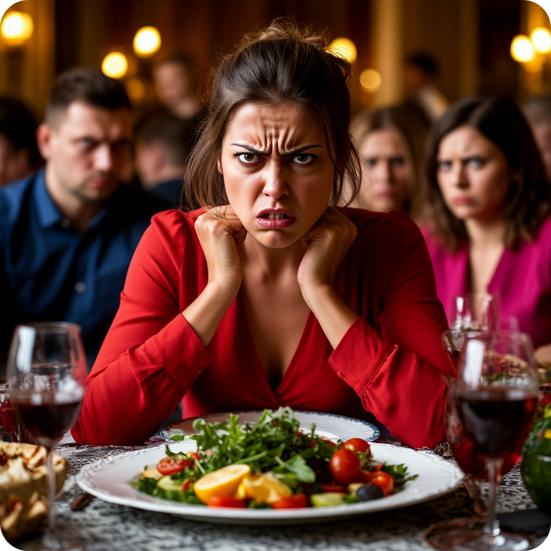 Их лица были недовольными, они молча ели салаты и обменивались многозначительными взглядами.