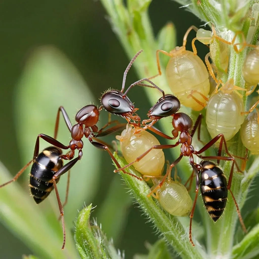 Представьте себе: мир крошечных пастухов, заботливо ухаживающих за своими "кормилицами". Эти маленькие работяги собирают своих подопечных в группы и защищают их от всяческих неприятностей вроде жуков-хищников или пауков.