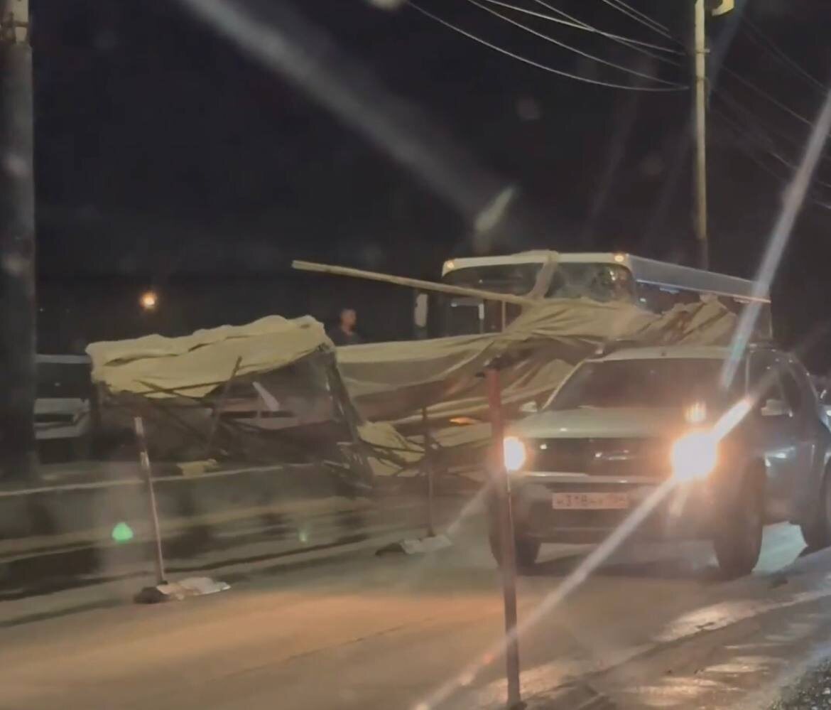 С моста у Телецентра ветром унесло металлическую конструкцию - она прилетела прямо в пассажирский автобус