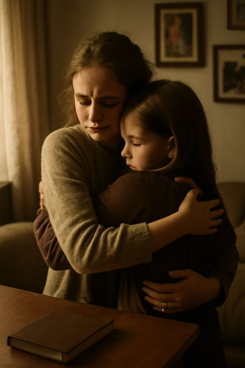 Наконец послышались лёгкие шаги на лестнице. Света спустилась — стройная девушка с длинными тёмными волосами и задумчивыми карими глазами. На ней была любимая домашняя футболка, но лицо выглядело усталым.