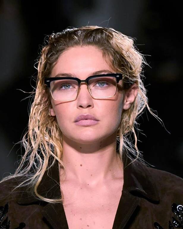 Кажется, "депрессивные" прически с показа Prada fw25 — новый тренд на следующий сезон, логично продолживший интеллект-кор (и ugly-эстетику), захватившие оправы. На Джиджи Хадид, например, "срезанные" очки: без рамки снизу и с имитацией бровей (Miu Miu ss24). Добавив немного неряшливости, получим образ с претензией на интеллектуальность: берем очки ботаника и делаем чуть взъерошенными волосы. Но чтобы не прослыть местной сумасшедшей, стоит адаптировать эту укладку к городу, сделав волнистые локоны. Получим спонтанный, небрежный и слегка уставший лук, при этом не выглядящий нарочито. 👓 Eyerepublic News